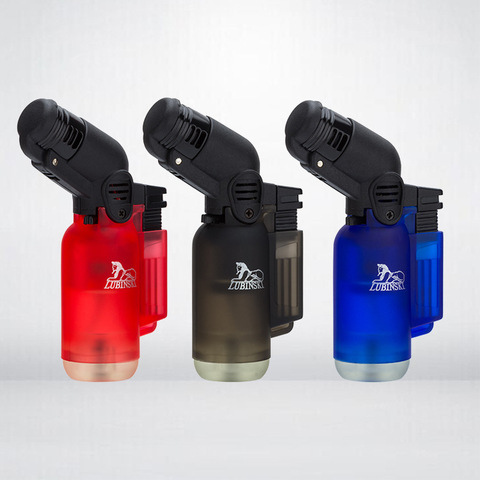 Lubinski nhựa Windproof xì gà nhẹ hơn thuốc lá chủ màu xanh ngọn lửa kép trực tiếp máy bay phản lực thiết kế hiện đại butan nhiên liệu Đảng khói
